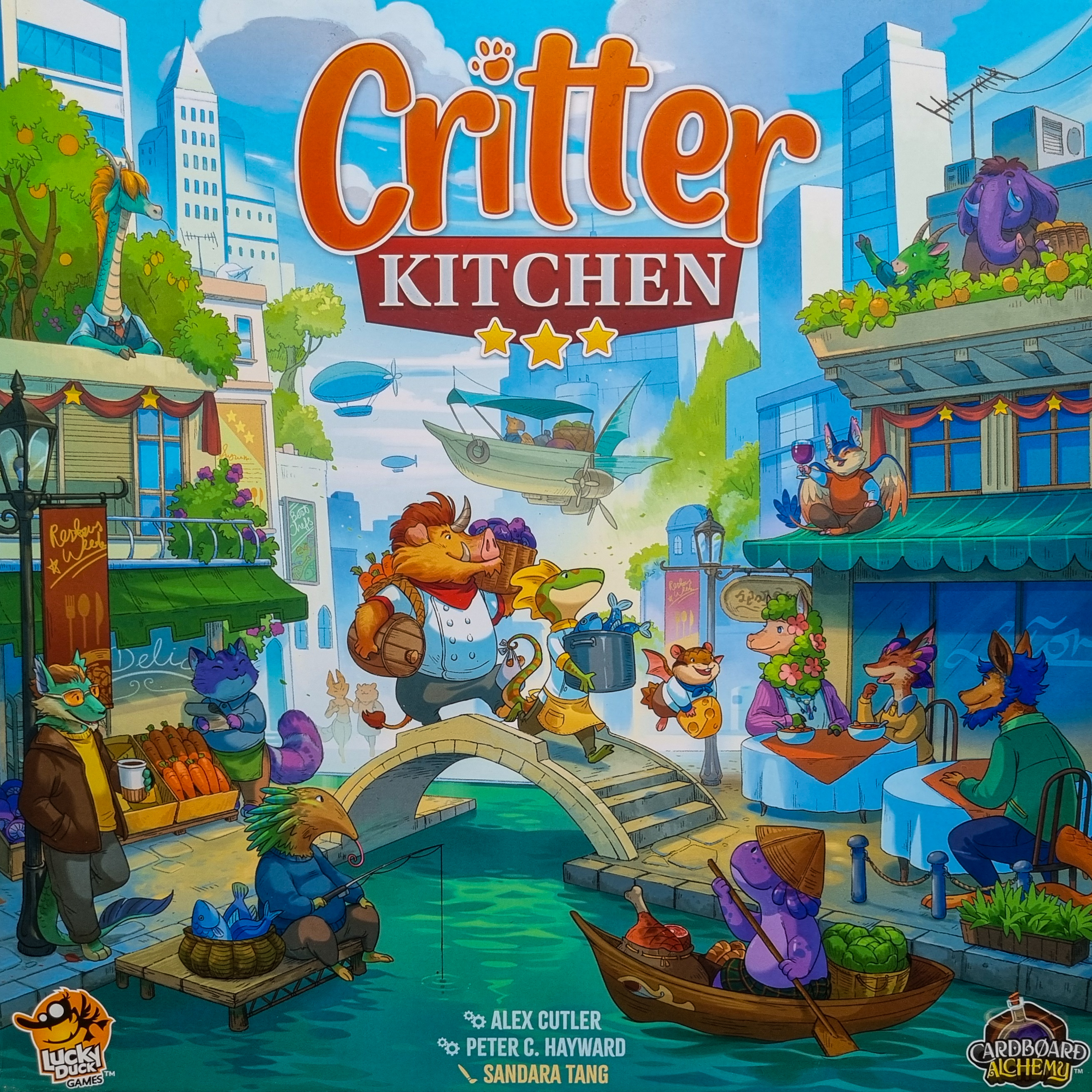 Critter Kitchen is a vibrant resource management game that has players competing and pushing their luck for the right ingredients. Each player will send 3 (sometimes 4) workers out each round with varying speeds and ingredient-carrying limits. The great part about this game is that in the retail box alone there is a great variance between plays. This is due to different end-game scoring that starts as hidden information, different critics that effect gameplay and end-game scoring, as well as Restaurateurs' which alter player abilities. If you enjoy worker placement games with constant player clashing that demands an adaptable strategy, I easily recommend Critter Kitchen and award it a Go To Golden Game seal.